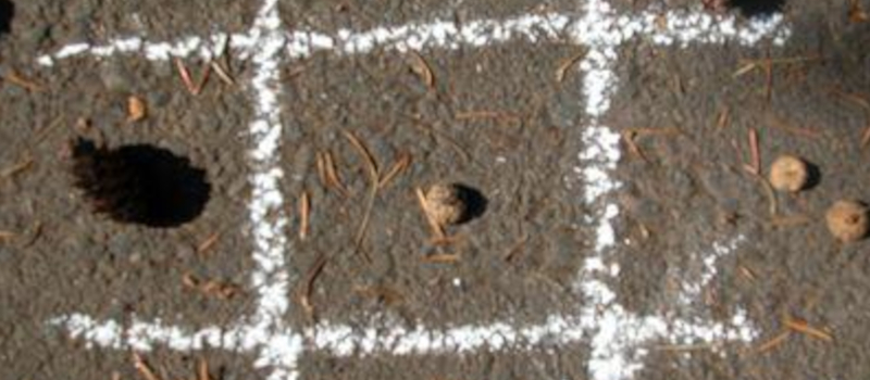 S palicami začrtamo polje, s kamenčki/plodovi/cvetjem pa igramo.